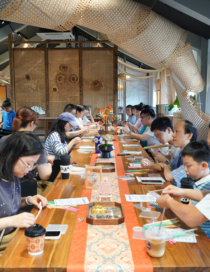 在竹編杯墊手作體驗環(huán)節(jié),現(xiàn)場氣氛熱烈非凡。會員們圍坐在一起,面前擺放著竹篾、剪刀等工具,老師耐心講解、親手示范,大家認(rèn)真學(xué)習(xí),眼睛緊盯著老師的動作,手中的竹篾在指尖穿梭,遇到困難時,大家相互交流、互相請教,經(jīng)過一番努力,一個個獨具創(chuàng)意的竹編杯墊逐漸成型,有的古樸質(zhì)感、有的編織成獨特紋理,展現(xiàn)出了會員們的創(chuàng)新思維。圍爐冰茶是夏天的特色項目,大家一邊品嘗著大涼山酸奶,搭配精致茶點和水果,一邊分享工作生活中的趣事。